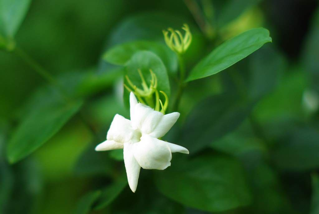 Each morning as I go out onto the deck and start down the stairs, I walk into what seems like a wall of sweetly perfumed air, thanks to a single plant. Toward the bottom of the stairs is my smallish jasmine plant.