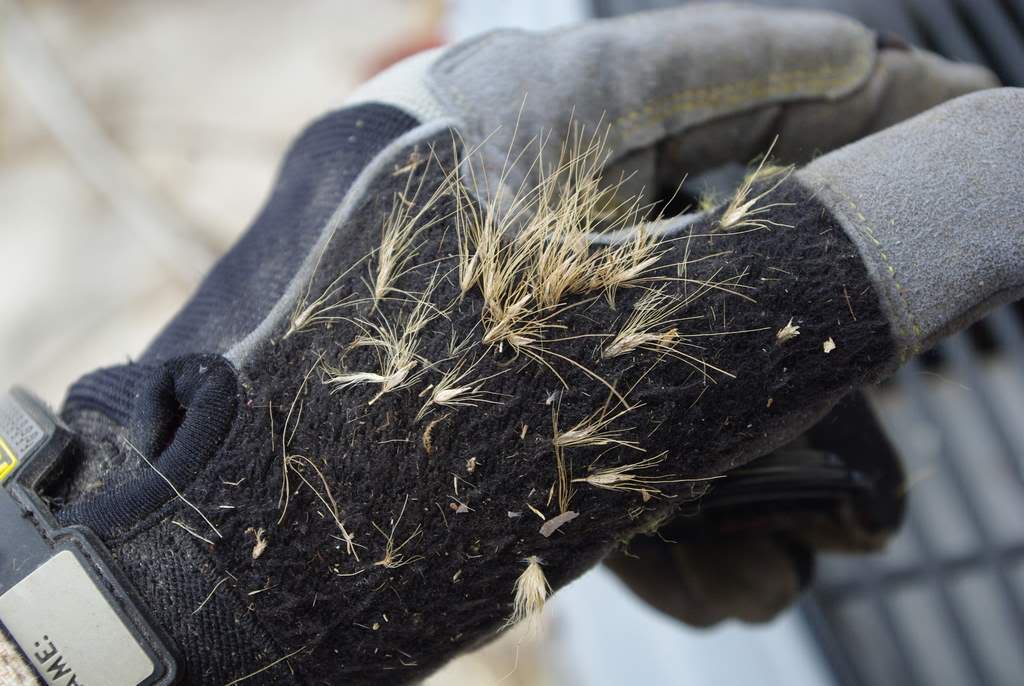 So after a few hours of hauling the cut grasses and feeding them into the chipper, I was finished. Also exhausted. Plus covered in chaff and grass seeds:
