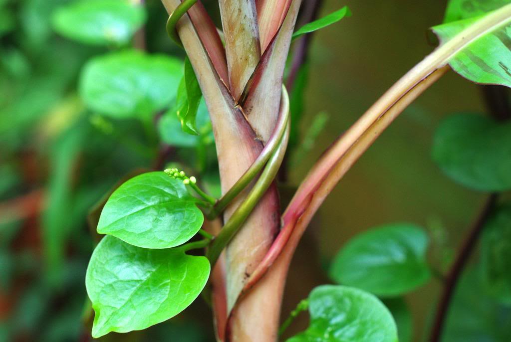 These are annual vines with thick, glossy leaves and wonderfully red stems. Everything about the plant is "thick" and beautiful: