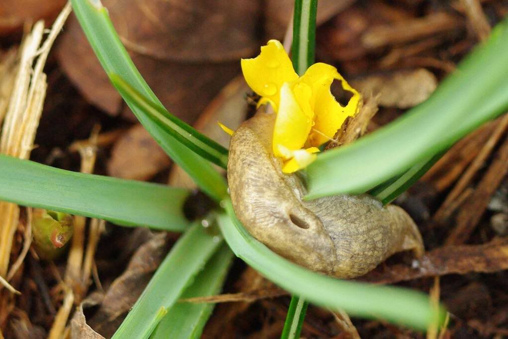 Upon closer inspection, a slug was feasting upon the canary petals. My first thought was not "die slug die!", but "I need to get the camera!"