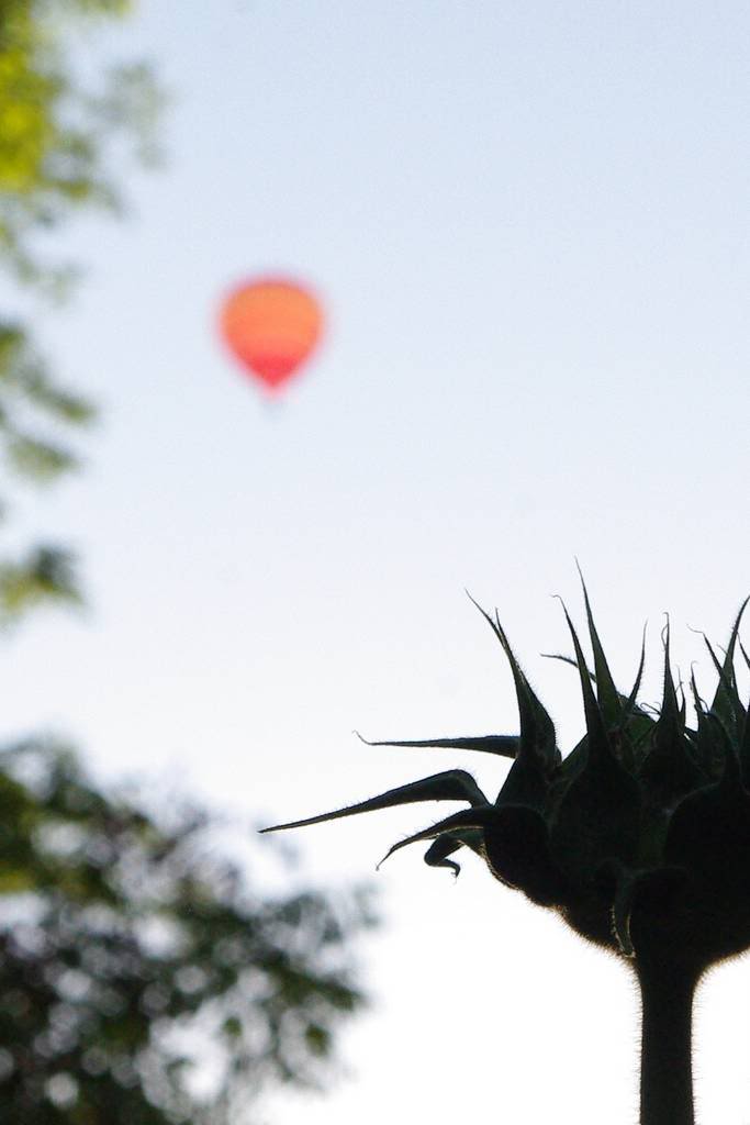 I looked up at just the right time: a hot air balloon drifted into view in the gap between the trees. Nice!