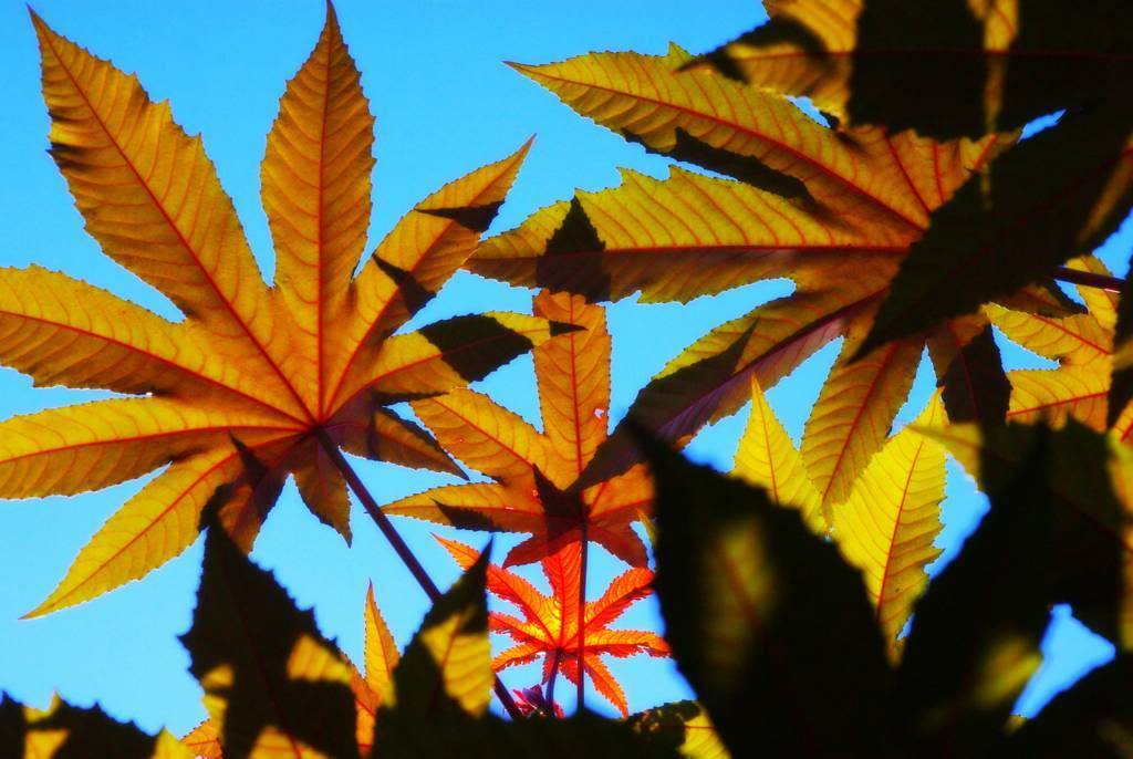 Speaking of beautiful, more castor bean leaves. It won't be long until they're gone: