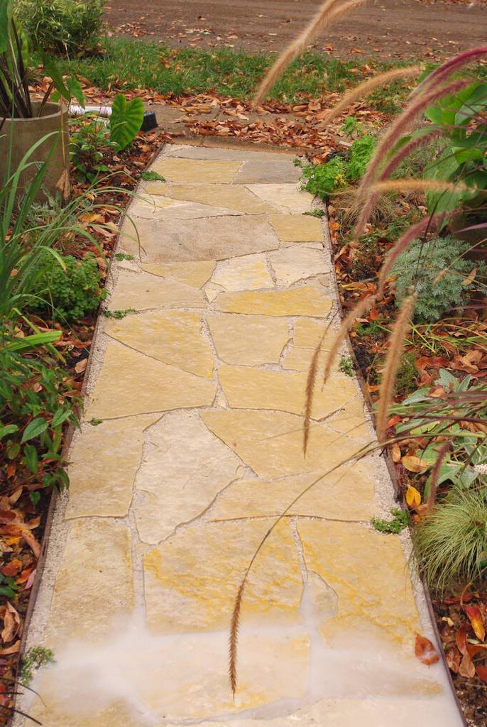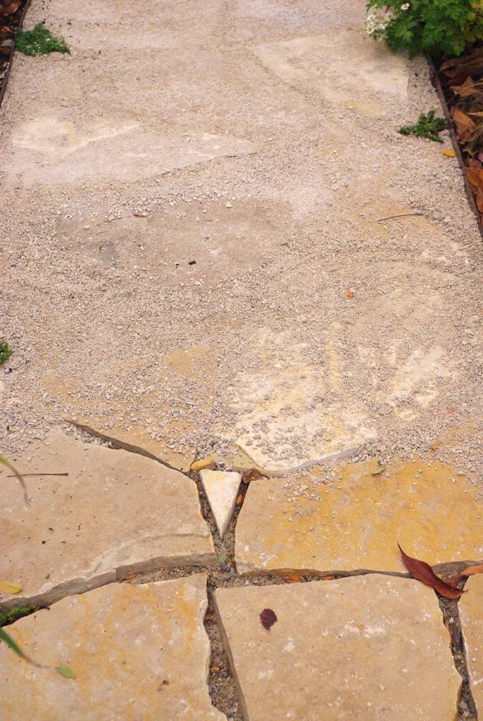 After several posts about the construction and plantings, you'd think I'd be done writing about the walkway. There was one more detail that I hadn't finished yet though, and it required some time to pass: filling the cracks.