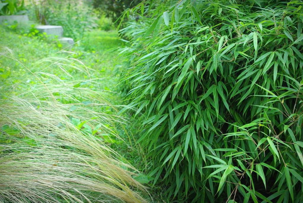 This was the first bamboo I bought and planted back in 2006, and its clumping habit has made it virtually care-free. It will never get more than 8-10' tall though which is huge for this space, but not typically what you think of when you think "bamboo" -- this is more of a shrub than a "tree" type of bamboo.