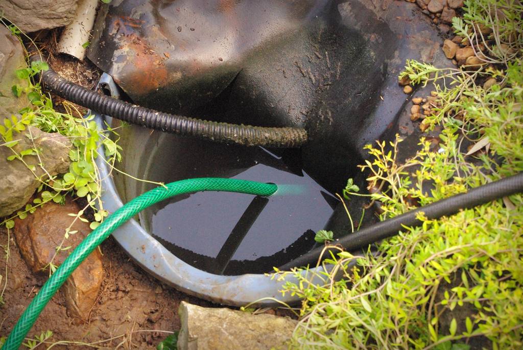 To clean it I bailed much of it out, but it's impossible to get the lowest few inches where all of the nasty black anaerobic sludge was, so I added a siphon hose: