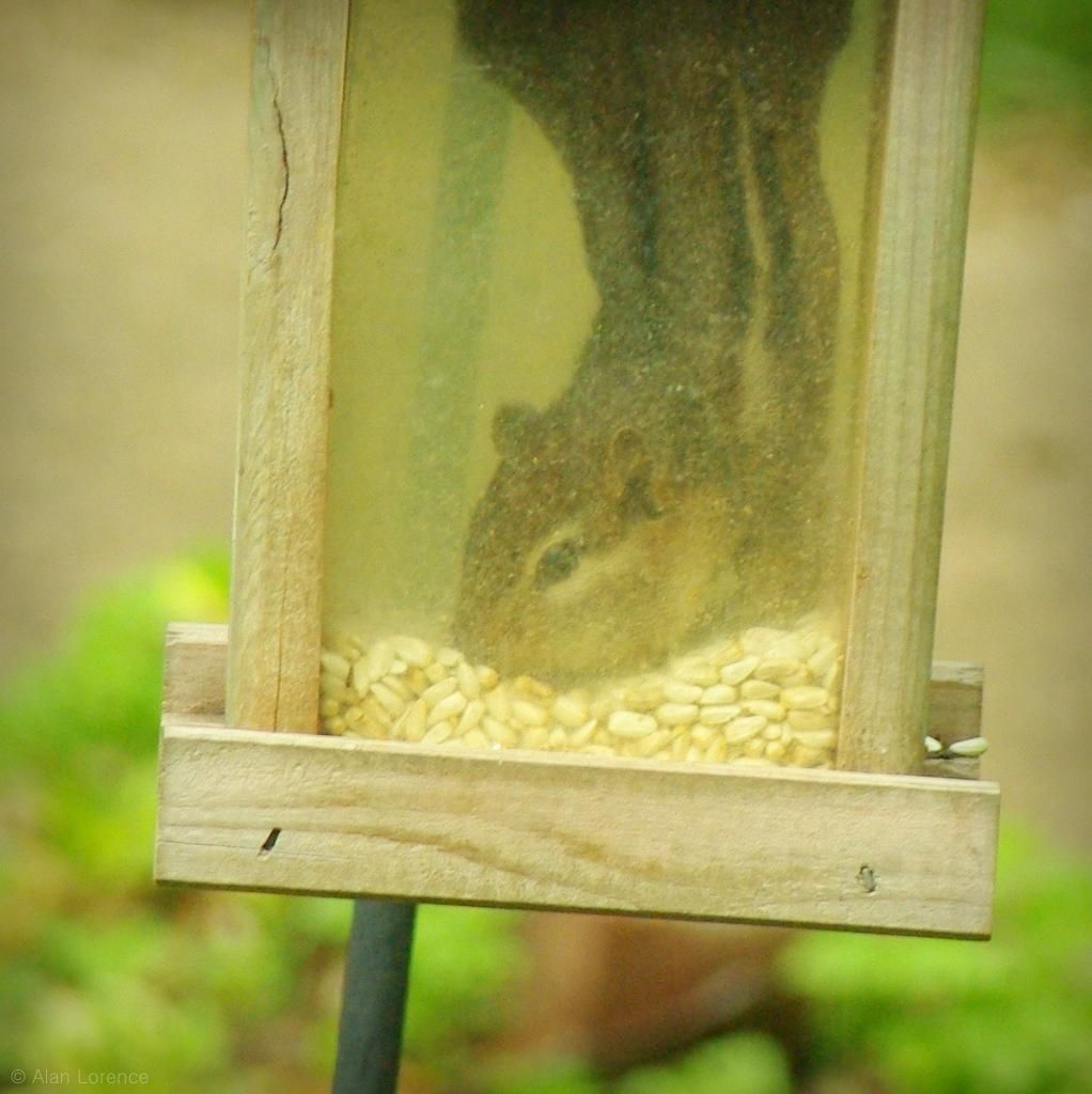 Chipmunks love it! (Yes, this one is inside the feeder!)