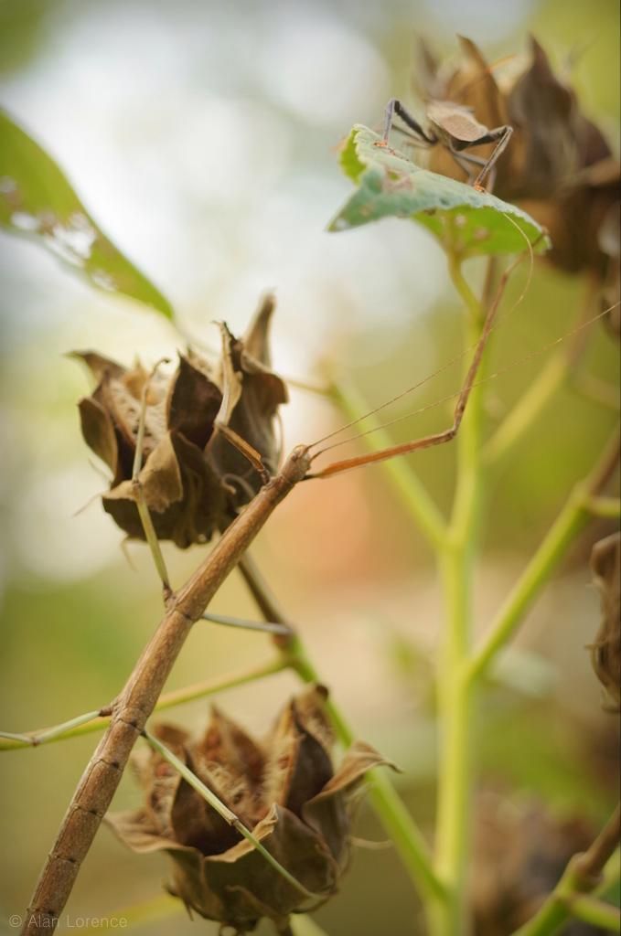 Stick insects (aka walkingsticks or stick bugs) are herbivores, and I tried to get a photo of this one eating the Hibiscus leaf: