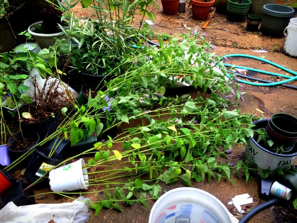 We're usually pretty lucky here with mostly storm free summers. However, we still get a few floppy plants, especially with overhead sprinkling. Oh well, time for a bit of bondage.